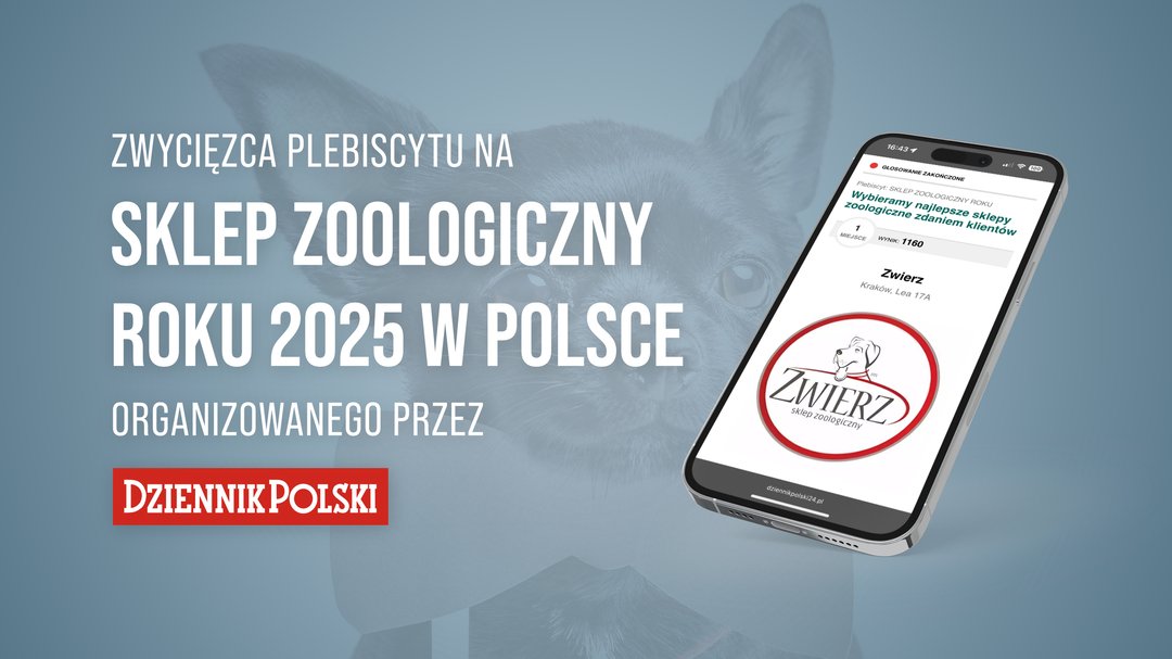 Zwycięzca Plebiscytu na SKLEP ZOOLOGICZNY ROKU 2025 W POLSCE organizowanego przez Dziennik Polski - nagroda przyznana większością głosów dnia 11 września 2025! Sklep zoologiczny ZWIERZ jest rodzinną firmą, która powstała z miłości do zwierząt, na podstawie wieloletnich doświadczeń hodowli dogów niemieckich i buldogów angielskich. Do każdego zwierzaka podchodzimy indywidualnie, starając się jak najlepiej dobrać dietę, szelki, smycze, ubranka czy gryzaki. Posiadamy szeroką gamę produktów i akcesoriów dla psów, kotów i innych pupili. Zapraszamy wszystkich miłośników zwierząt po karmy, akcesoria i wiele więcej! pet shop krakow - sklep dla zwierząt Kraków - sklep zoologiczny Kraków - sklepy zoologiczne Kraków - zoo sklep Kraków - Зоомагазин